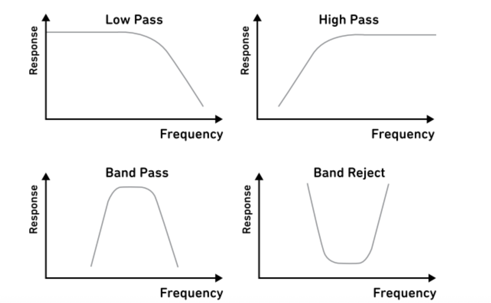 · 低通滤波器:只让低频部分信号通过,过滤掉高频信号。