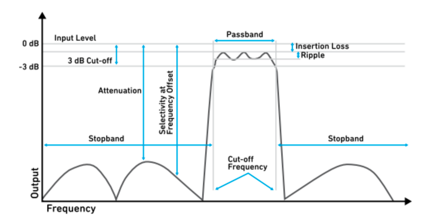 | 插入损耗 | 滤波器本身对无线射频信号造成的损耗 | dB | 越低越好 |