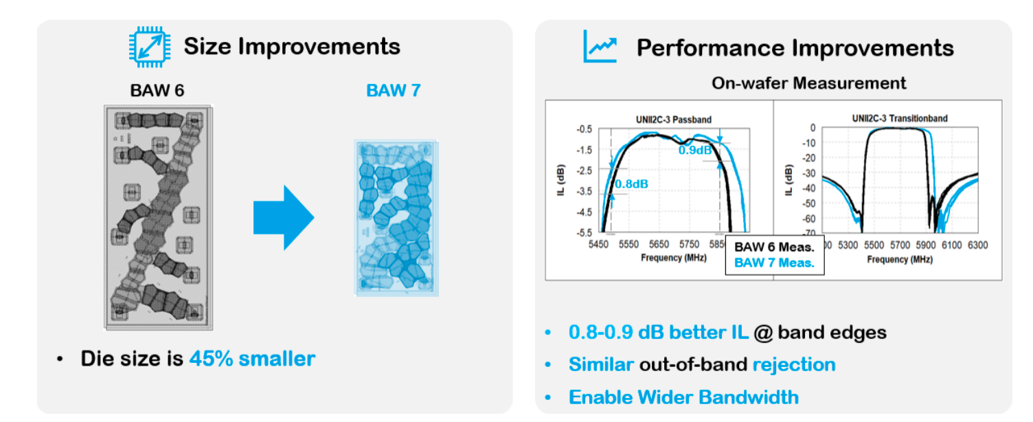 图10. Qorvo BAW 6与BAW 7工艺的优势——以U-NII 2c-3滤波器为例
