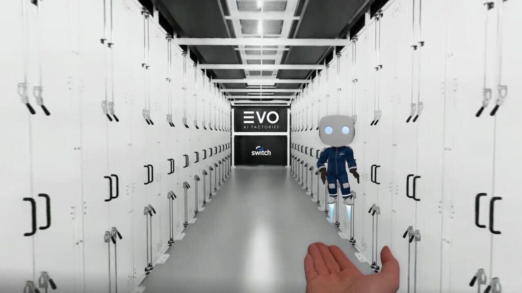 Switch 的 EVO AI 工厂的数字孪生,采用 AI 驱动的数字虚拟形象,在 Apple Vision Pro 中使用 CloudXR 进行可视化。图片来源:Switch。