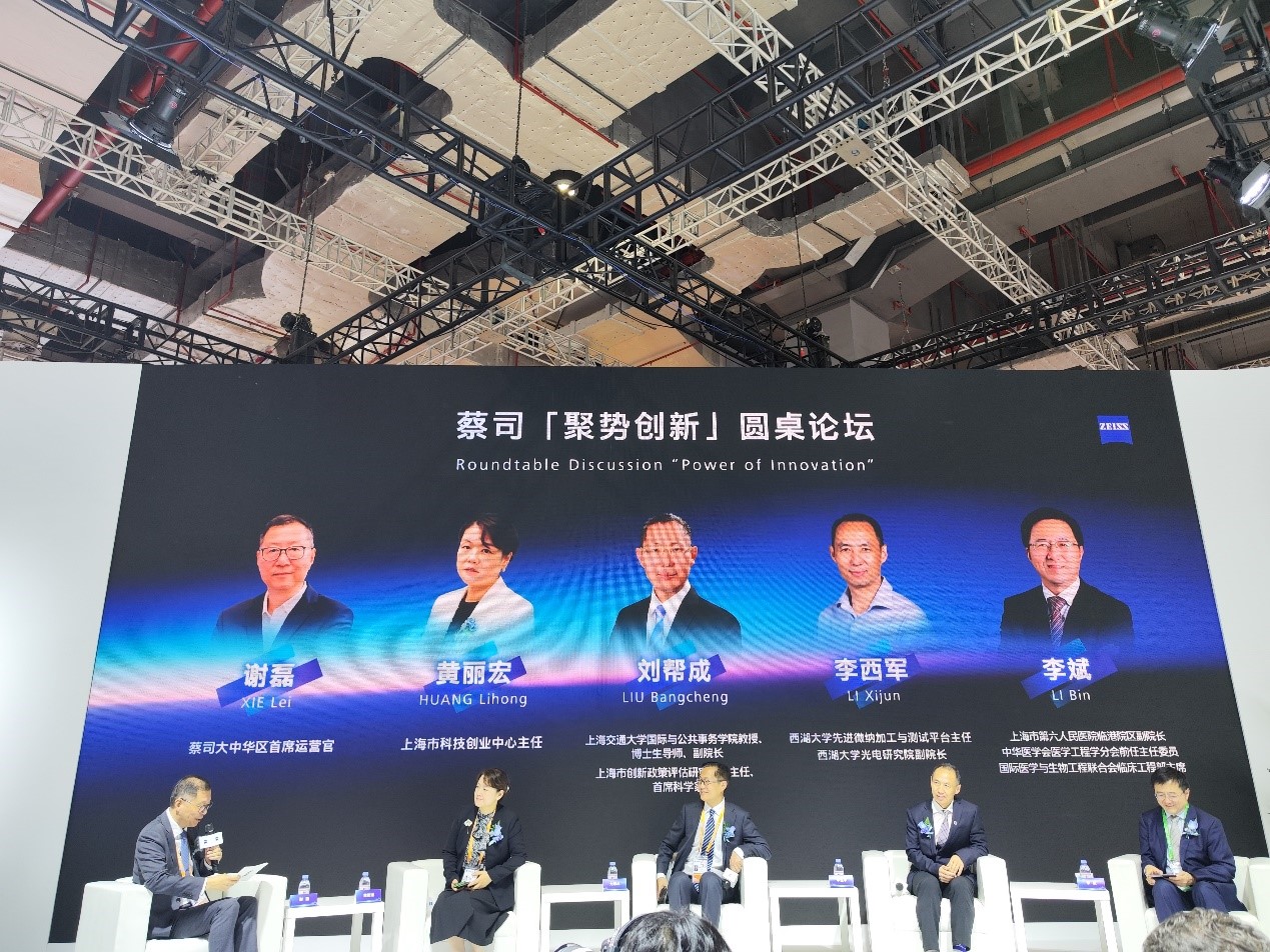主旨发言后,蔡司以“聚势创新”为主题举办圆桌论坛,蔡司大中华区首席运营官谢磊担任主持人,与行业专家、产业链伙伴围绕“十五五”规划与上海科创中心建设目标,展开深度交流。