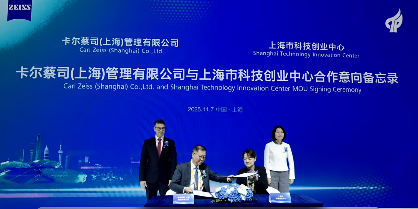 论坛尾声,蔡司与上海市科技创业中心签署合作意向备忘录,正式加入上海创新网络,深度参与长三角地区科技创新发展。未来,双方将整合资源、共享经验,共同推动前沿技术研发与产业化应用。