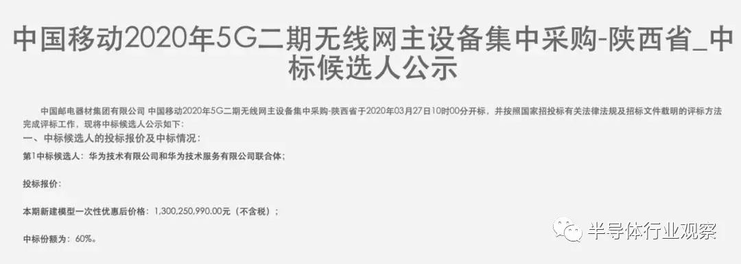 同时,在近期备受关注的中国移动2020年5G二期无线网主设备集中采购工作中,华为保持了其龙头地位,份额达到57.7%,加上上期扩容份额总份额约为60~61%。