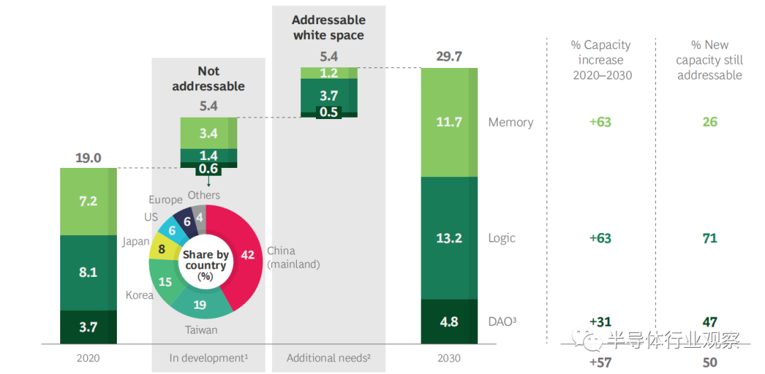 资料来源:BCG基于SEMI、VLSI和Gartner的市场预测做出的分析;SIA成员的意见;BCG项目经验。